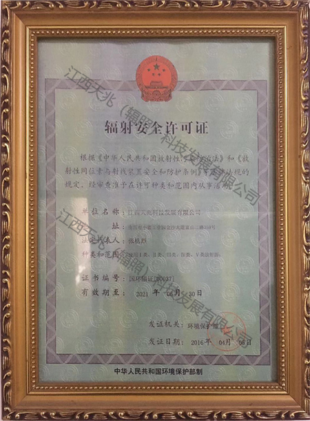 • 輻照安全許可證